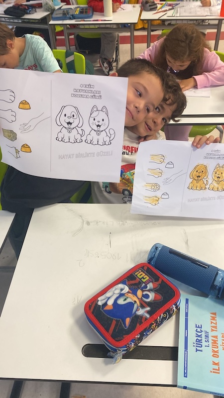 Hayvanları Koruma Günü kapsamında düzenlenen etkinlikte 1. Sınıf öğrencilerimiz, sokak hayvanlarını konu alan özel boyama sayfalarıyla hem keyifli vakit geçirdi hem de hayvan sevgisini pekiştirdi. Öğrencilerimiz, birbirinden renkli çalışmalarını tamamladıktan sonra hayvanların yaşam haklarına dikkat çekti.