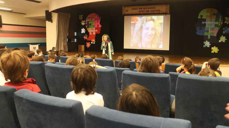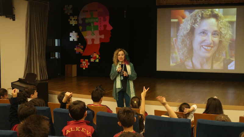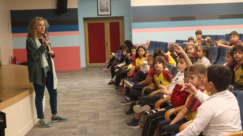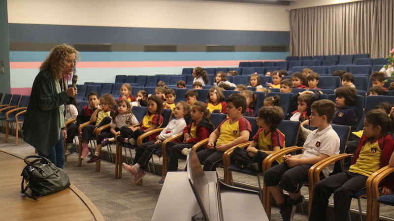 Yazarımızla yapılan keyifli söyleşide, sevgili Aytül AKAL kendi birinci sınıf yaşamından güzel örnekler paylaştı. Anlattığı anılarda; öğrencilerimize kitap okuma sevgisi, okumanın bireye kattıkları ve kitap okuma alışkanlığı kazanmanın önemi hakkında etkileyici olaylara yer verdi. Bir kitabı, yazarını ve çizerini tanımanın önemi ile kitabın künyesini inceleme konularına da değinilen söyleşi; öğrencilerimizin yazara sorduğu sorularla devam etti.