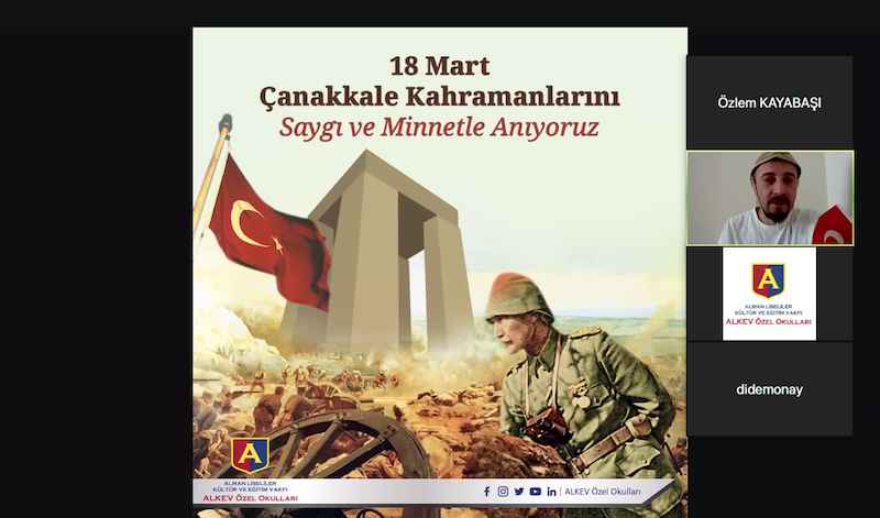 ALKEV Özel Anadolu ve Fen Lisesi olarak Çanakkale’de canlarını veren aziz şehitlerimizi ve Ata’mızı anmak için bir araya geldik. Bizler için manevi değeri yüksek olan bu önemli günde Tarih Zümre Başkanı Kadir Asar ve öğrencilerimizin hazırladığı çevrim içi programda bir kez daha duygu dolu anlar yaşadık.