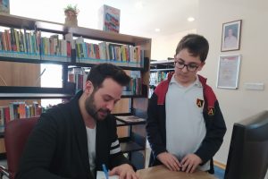 Oyuncu-yazar Murat TAVLI, “İsimsizler” kitabı ile ortaokul öğrencilerimizle buluştu. Çanakkale Zaferi’ni konu alan kitaptan önemli notlar paylaşan yazar, oyunculuk ve yazarlık serüveninden bahsetti. Söyleşinin ardından kütüphanede kitaplarını imzalayan yazar, öğrencilerle bol bol fotoğraf çektirdi.