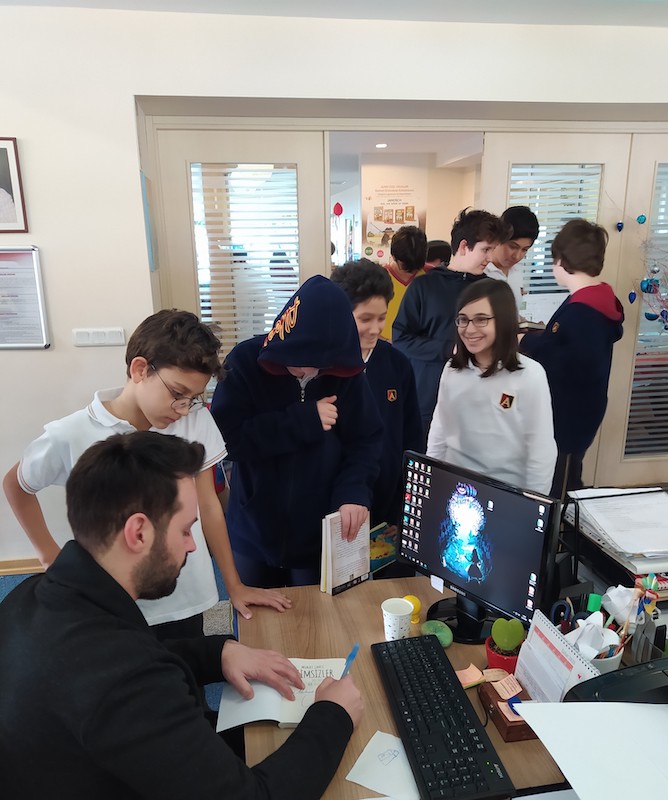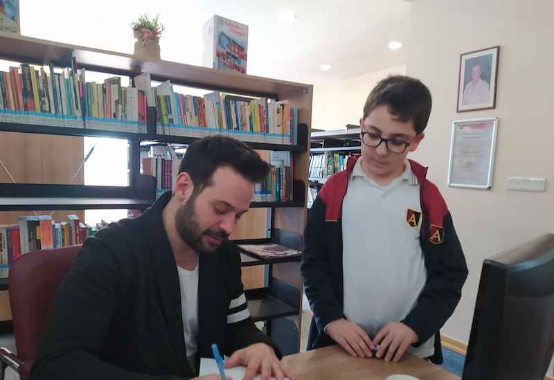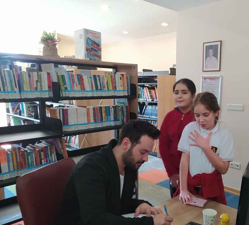 Oyuncu-yazar Murat TAVLI, “İsimsizler” kitabı ile ortaokul öğrencilerimizle buluştu. Çanakkale Zaferi’ni konu alan kitaptan önemli notlar paylaşan yazar, oyunculuk ve yazarlık serüveninden bahsetti. Söyleşinin ardından kütüphanede kitaplarını imzalayan yazar, öğrencilerle bol bol fotoğraf çektirdi.