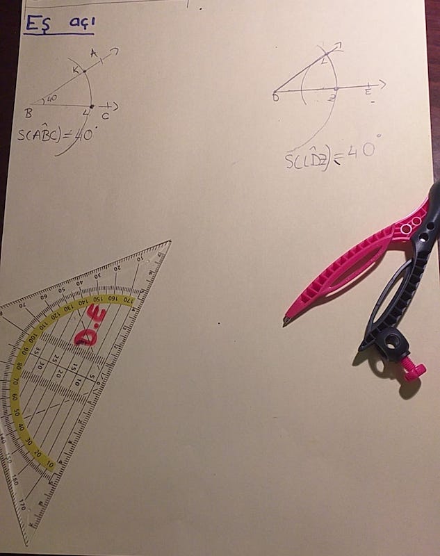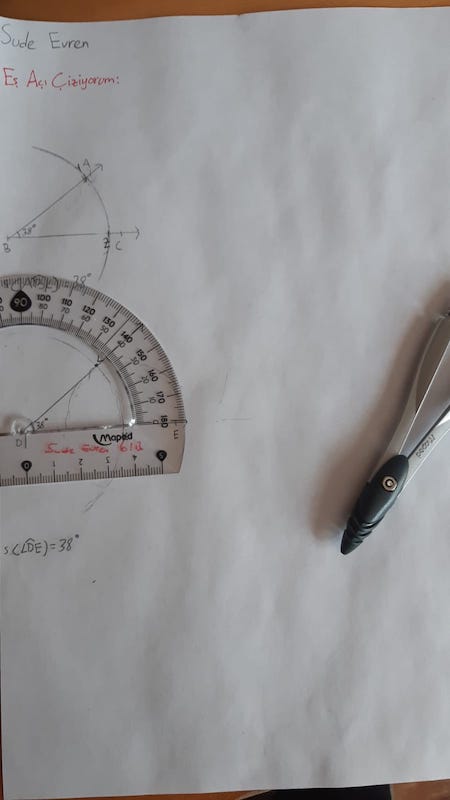 6. sınıf öğrencilerimiz matematik dersinde geometri konularına giriş yaptılar. Dersimizi somutlaştırarak kalıcı anlamayı arttırmak için çevrimiçi derslerimizde de manipülatiflere yer veriyoruz. Eş açılar konusunu öğrenirken her öğrencimiz bireysel olarak kendi açılarını oluşturdular. Oluşturdukları açıları isimlendirip, açıölçer yardımıyla ölçümlediler. Buldukları açılara eş açı çizebilmek için pergel kullanmayı deneyimlediler. Pergel ile oluşturdukları eş açıların ölçülerini açıölçer yardımıyla sağlamasını yaptılar. Öğrencilerimiz yaparak ve yaşayarak geometri konularını keşfetmeye devam ediyorlar.
