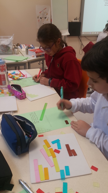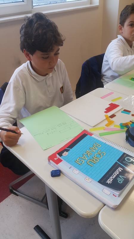 6.sınıf öğrencilerimiz kesirler konusunda manipülatif kullandılar. Bireysel olarak kendilerine verilen kesir takımlarını kullanarak konuyu somutlaştırdılar. Kendilerine verilen yönerge doğrultusunda kesir takımları ile bireysel olarak payları eşit kesirleri ve daha sonra paydaları eşit kesirleri matları üzerinde modellediler. Modellerini etkinlik kağıdına matematik cümlesi ile ifade ettiler. Modelleme sonucunda sıralama kurallarını keşfederek kalıcı anlamayı sağlamış oldular.