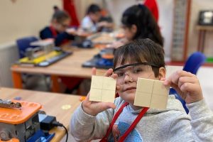 Ahşap oyuncak tasarlayan 3. sınıf mini makerlar olarak, Matematik Dersi “Kesirler Ünitesi“ kapsamında kendi eğitim materyalimizi oyuncak şeklinde tasarladık. Oyuncağımız pay-payda, bütün-yarım-çeyrek, birim kesir, kesri okuma, kesri modelleme, basit kesirler oluşturma hedeflerini pekiştirmeye imkân sağlıyor.