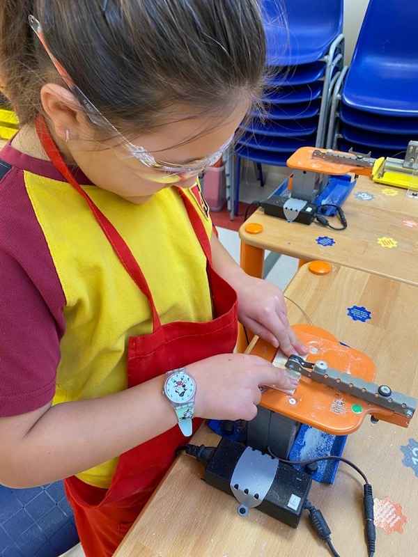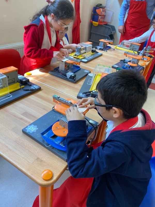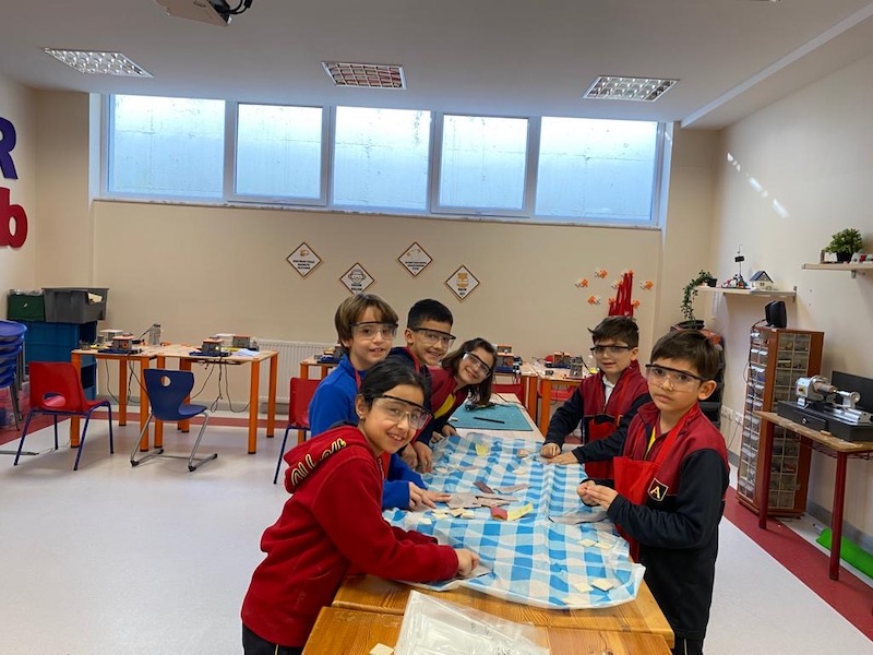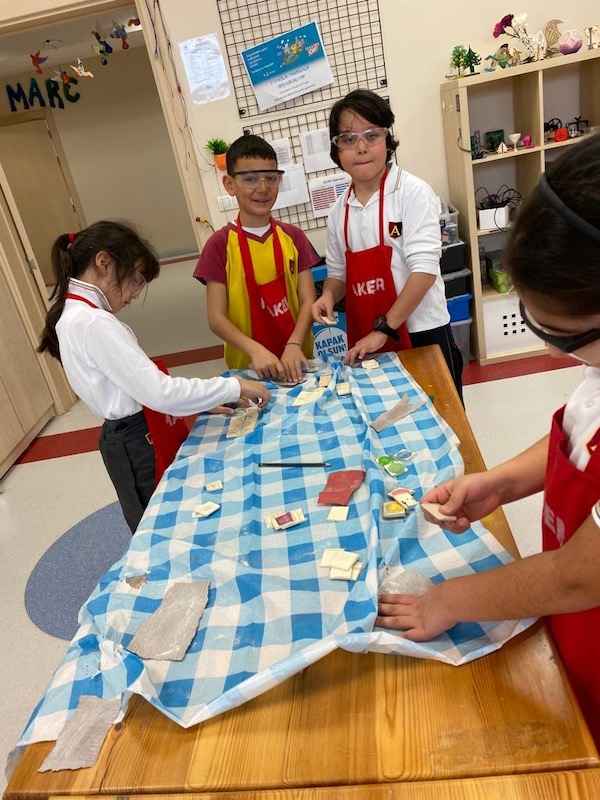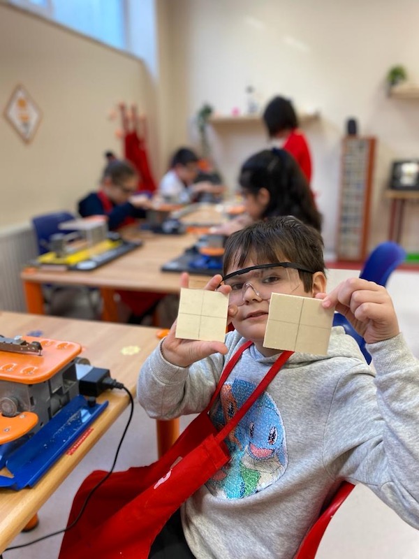 Ahşap oyuncak tasarlayan 3. sınıf mini makerlar olarak, Matematik Dersi “Kesirler Ünitesi“ kapsamında kendi eğitim materyalimizi oyuncak şeklinde tasarladık. Oyuncağımız pay-payda, bütün-yarım-çeyrek, birim kesir, kesri okuma, kesri modelleme, basit kesirler oluşturma hedeflerini pekiştirmeye imkân sağlıyor.