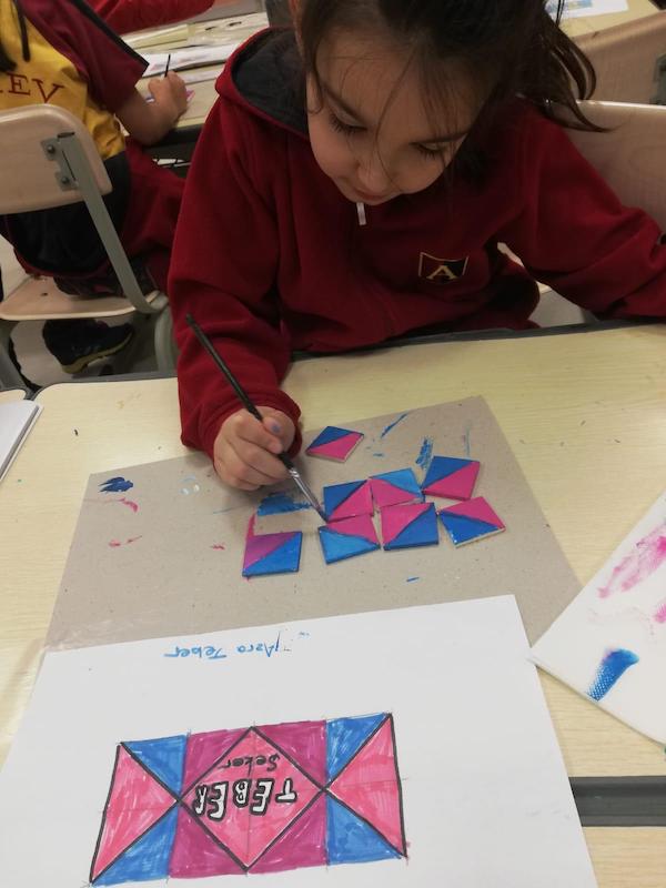 Çalışmamızın her aşamasında yeni deneyimler edindik, oldukça eğlendik. Daha önce kesirler konusunu bilmeyen öğrenciler için hazırladığımız bu materyal sanatla buluştuğunda daha da anlam kazandı.