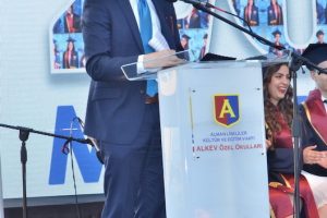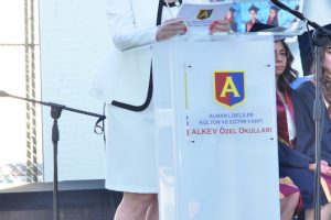 Alman Kültür Ateşesi Herr Laufer, Alman Liseliler Kültür ve Eğitim Vakfı kurucularımız, üyelerimiz, yöneticilerimiz, öğretmenlerimiz ve ailelerin katıldığı törende coşku, gurur, sevgi ve hüzün bir aradaydı. Mezunlarımızın ALKEV’den aldıkları eğitim, bilgi ve kültürle ülkemizin ve insanlığın gelişmesinde bilimin takipçisi, Atatürk ilkelerine bağlı, çağdaş anlayışın ışığında üniversite hayatlarında da başarılı bireyler olacağından kuşkumuz yok. Tüm mezunlarımızı yürekten kutluyor ve bundan sonraki hayatlarında başarılarının devamını diliyoruz.