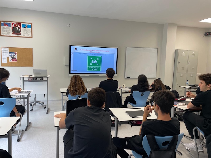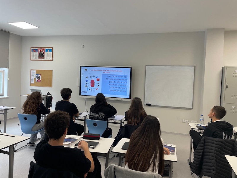 Hafta boyunca sınıf içi etkinlikler, afete hazırlık sunumları, tahliye tatbikatları ve uygulamalarıyla öğrencilerimizin afet bilinci pekiştirilmeye devam edecek. Eğitimlerde;