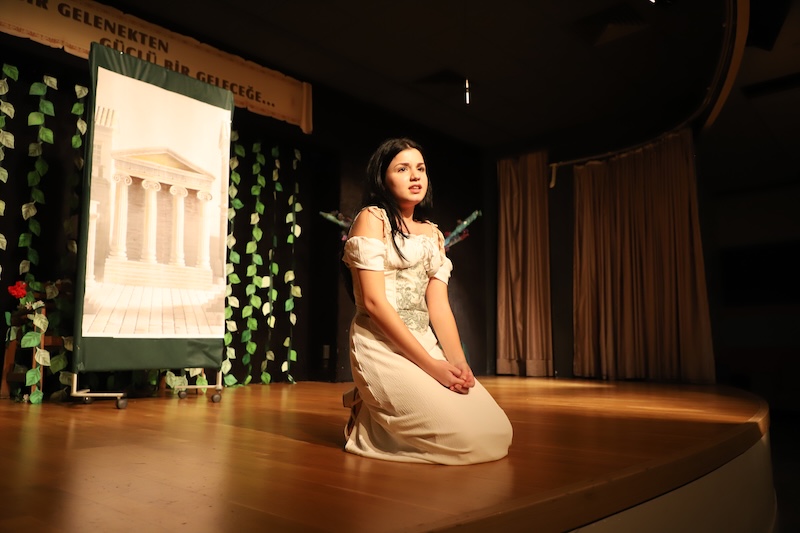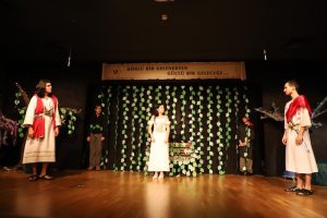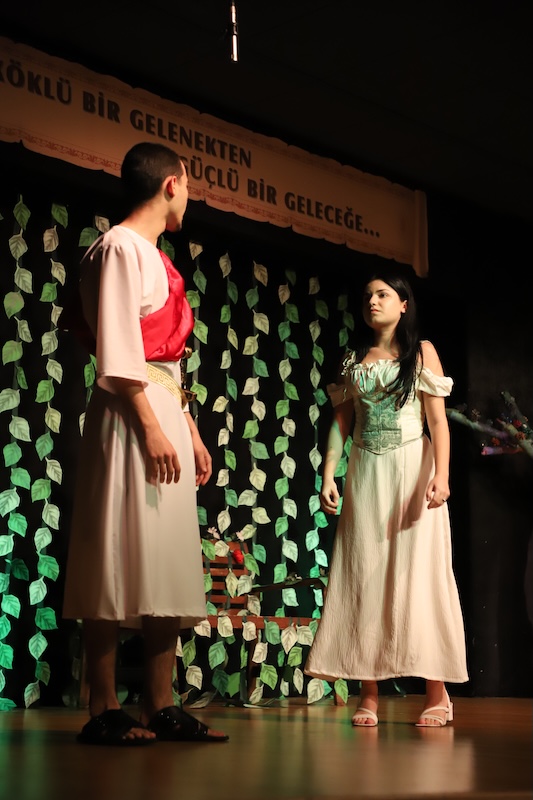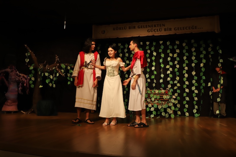 Lise Tarih Zümre Başkanı Kadir Asar yürütücülüğünde faaliyetlerini gerçekleştiren Tiyatro Kulübü öğrencilerimiz tarafından sahnelenen oyunda; aşkın, büyünün ve kimlik karmaşalarının iç içe geçtiği olaylar, öğrencilerin başarılı oyunculukları ve yaratıcı sahnelemeleriyle can buldu.