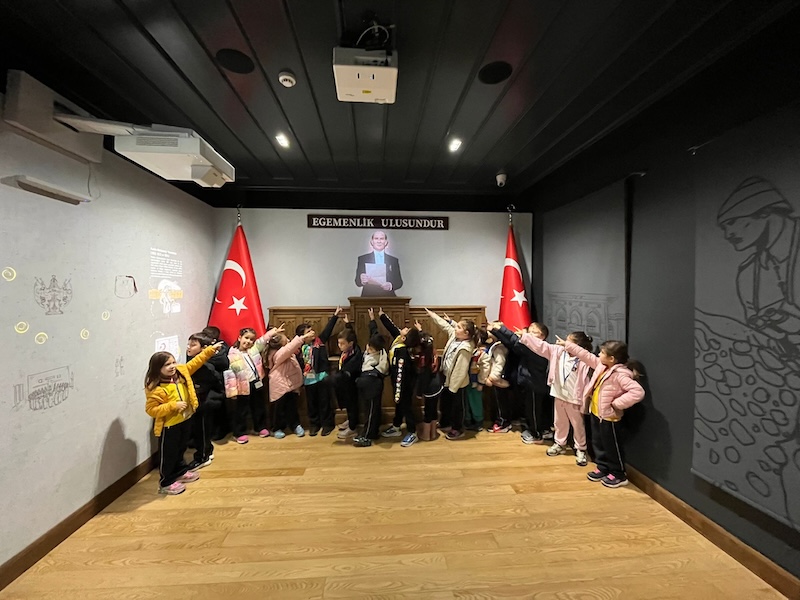 Mustafa Kemal Atatürk’ün Cumhuriyet’i ilan ettiği gün yaptığı konuşmayı, annesi Zübeyde Hanım’ın, babası Ali Rıza Efendi’nin ve İstiklâl Marşı’mızın şairi Mehmet Âkif Ersoy’un canlandırmalarını heyecanla izlediler. Bu gezi sayesinde öğrencilerimiz, Atatürk’ün yaşamına, yaptıklarına ve ilgi alanlarına dair birçok yeni bilgi edinme fırsatı buldular.