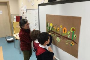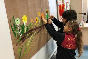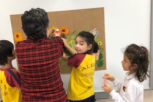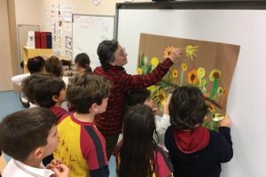 Yazarımız, sınıflarımızı sırayla ziyaret ederek çocuklarımızla kitap üzerine sohbet etti. Ayrıca öğrencilerimizin yaptığı rengârenk günebakan çiçekleriyle harika bir kompozisyon oluşturdu. Böylece çocuklarımız yazarımızın ressam yönünü de görmüş oldu.