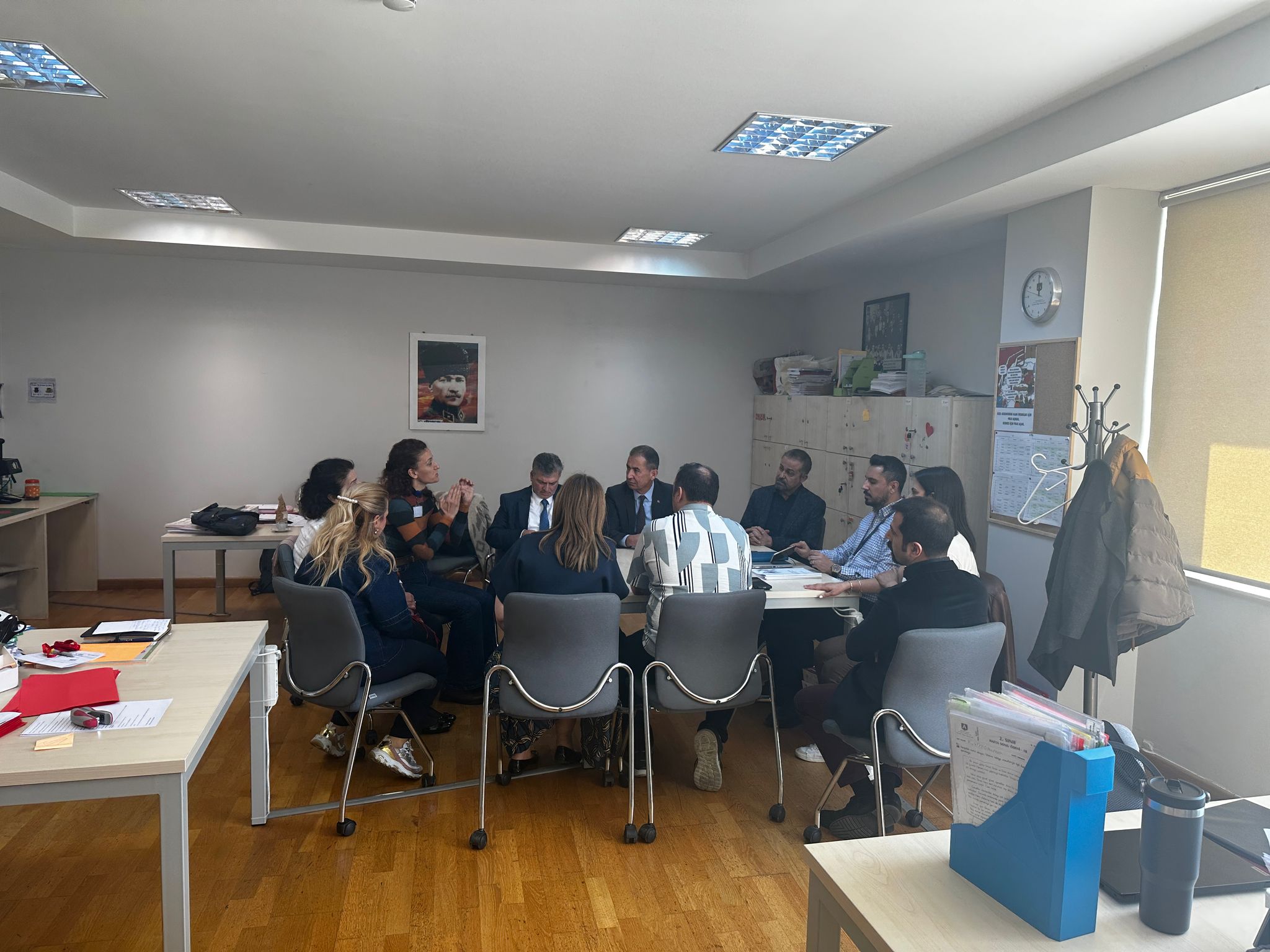Ardından okulumuzu gezerek öğrencilerimizle sohbet eden Sayın Artar ve Sayın Saygılı, öğretmenler odamızda sınıf öğretmenlerimizle de bir araya gelerek Türkiye Yüzyılı Maarif Modeli izleme ve değerlendirme çalışmaları kapsamında görüş alışverişinde bulundular. Öğretmenlerimizin deneyimlerini dinleyip eğitim öğretim süreçleri üzerine değerli geri bildirimlerini paylaştılar.