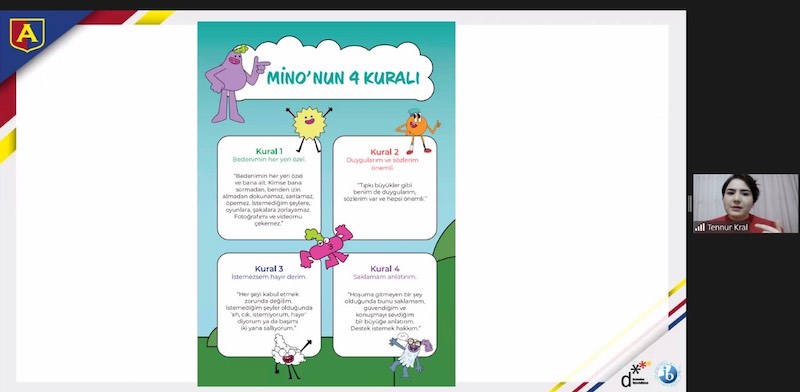 İlkokul Psikolojik Danışmanımız Tennur Kral tarafından Çocuklukta Cinsel Gelişim ve Mahremiyet konulu web konferansı düzenlendi. Cinsel gelişimin ne olduğu, sağlıklı bir cinsel gelişim için yapılabilecekler, mahremiyet eğitimi konularına değinildi. Değerli katılım ve paylaşımları için tüm velilerime teşekkür ederiz.