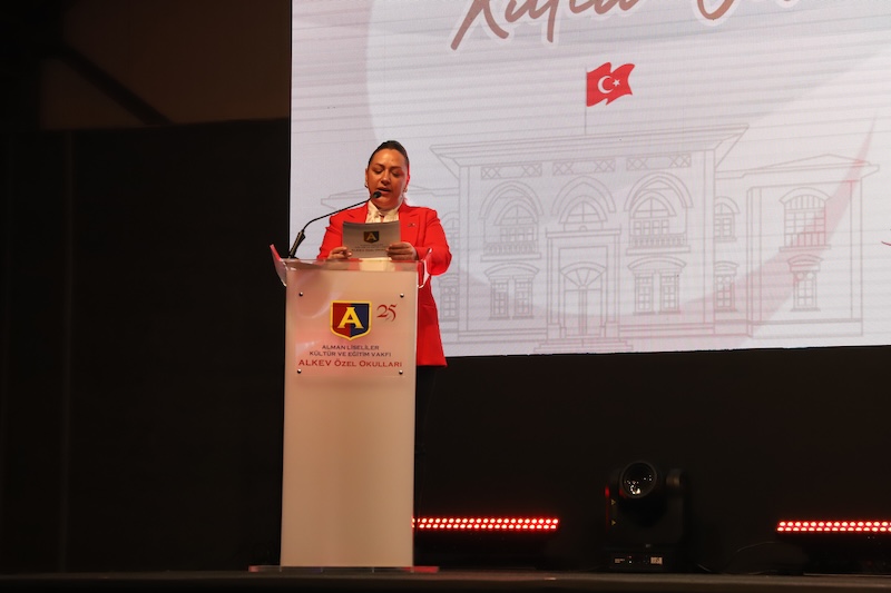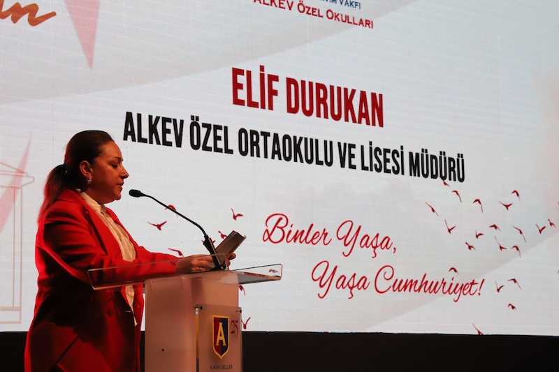 ALKEV Özel Ortaokulu ve Lisesi Müdürü Sayın Elif Durukan, cumhuriyet değerlerine bağlılığın yaşamın her anında önem ve gerekliliğini ele alan konuşmasıyla öğrenci ve velilerimizin 29 Ekim coşkusu bir kat daha arttı.