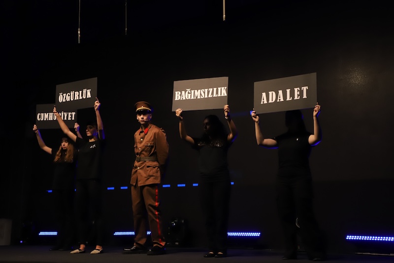 101 yıl önce, büyük bedeller ödenerek kurulan Cumhuriyetimizin kazanımlarını ALKEV Özel Okulları öğrencilerinin sahnelediği “Cumhuriyetin Sesleri” drama performansıyla yeniden hatırladık. Cumhuriyetin bizlere kazandırdığı en kıymetli değerler olan “adalet, özgürlük ve bağımsızlık” kavramlarını Ata’mızın mirasına sahip çıkan öğrencilerimizin pırıl pırıl parlayan gözlerinde görmenin mutluluğunu yaşadık.