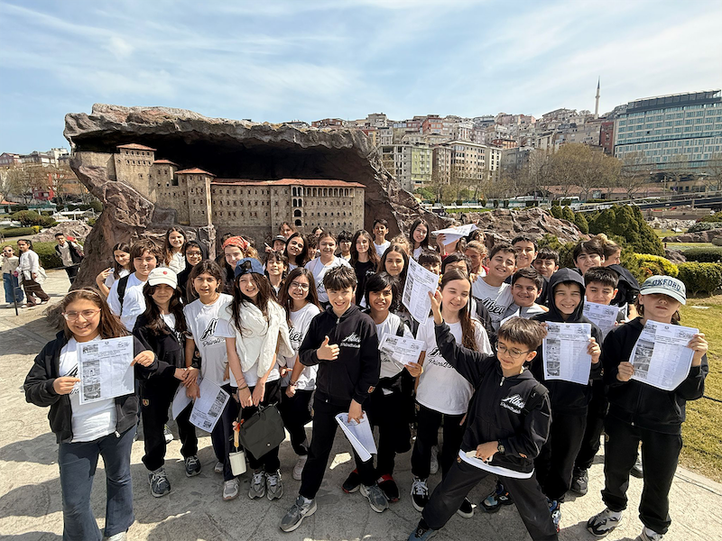 5.sınıf öğrencileri Fen Bilimleri dersi kapsamında Dijital Deneyim Merkezi ve Miniatürk’ü ziyaret ettiler. Dijital Deneyim Merkezi’nde sanal gerçeklikten artırılmış gerçekliğe, dokunmatik ekranlardan yapay zekâ destekli interaktif uygulamalara kadar geniş bir teknoloji yelpazesi ile oluşturulan eserlerle doğrudan bir iletişim ve etkileşim kurma fırsatını buldular. Miniatürk’te, binlerce tarihi eser arasından, bilinirliğine, dönemini temsil yeteneğine göre Türkiye ve Türk kültürü ile sınırlanmayan, Anadolu’yu Anadolu yapan tüm değerlerle birlikte, yakın coğrafyadaki bütün bir yaşanmışlığın izlerini taşıyan 139 mimari eserin, 1/25 oranına küçültülmüş minyatür modellerine gözlemleme fırsatı buldular.