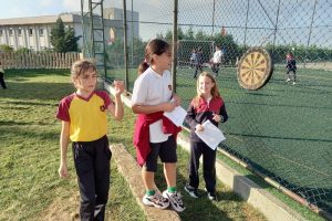 5.sınıf öğrencilerimiz Doğal Sayılarla Dört İşlem konusunu bahçe etkinliklerimizle pekiştirdiler. Öğrencilerimiz gruplara ayrılıp dart oynayarak, basket atarak, kaleye şut çekerek, hulahop çevirerek ve parkın etrafında koşarak yönergelere uygun şekilde kendilerinden istenilen görevleri yerine getirdiler. Bahçede keyifle geçen dersimizde görevlerini gerçekleştirirken hem spor yaptılar hem de dört işlem becerilerini geliştirdiler.
