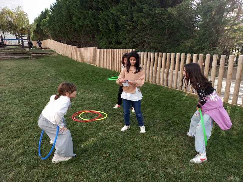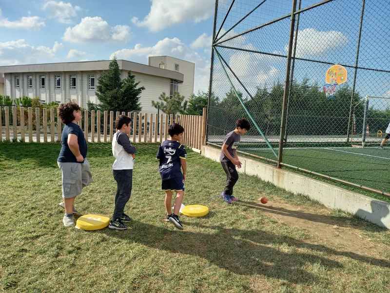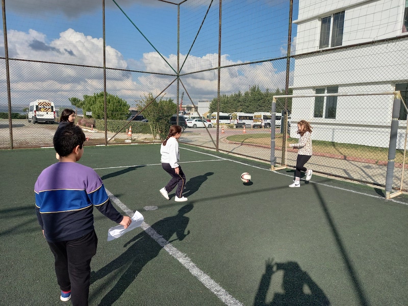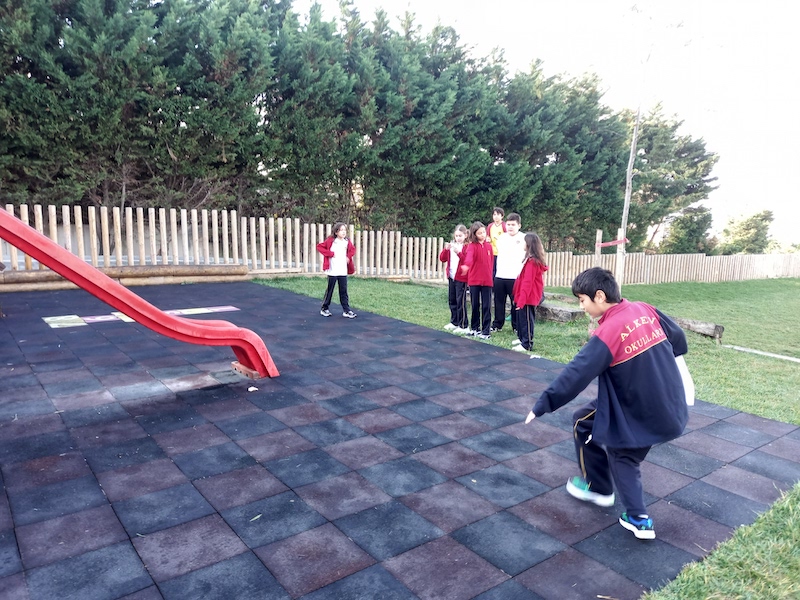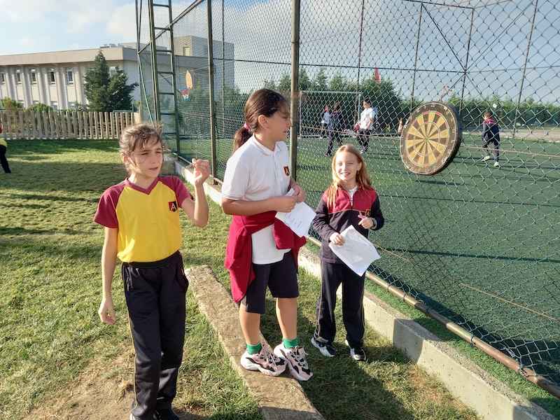 5.sınıf öğrencilerimiz Doğal Sayılarla Dört İşlem konusunu bahçe etkinliklerimizle pekiştirdiler. Öğrencilerimiz gruplara ayrılıp dart oynayarak, basket atarak, kaleye şut çekerek, hulahop çevirerek ve parkın etrafında koşarak yönergelere uygun şekilde kendilerinden istenilen görevleri yerine getirdiler. Bahçede keyifle geçen dersimizde görevlerini gerçekleştirirken hem spor yaptılar hem de dört işlem becerilerini geliştirdiler.