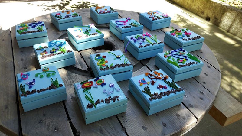 Quiling sanatını öğrenerek deniz yaşamını ahşap kutularımıza; doğanın güzelliklerinden biri olan çiçeklerimizi de yastıklarımıza taşıdık.