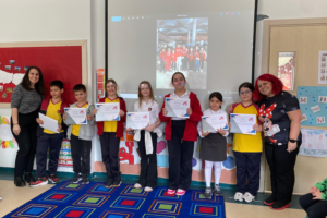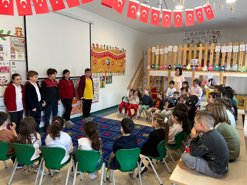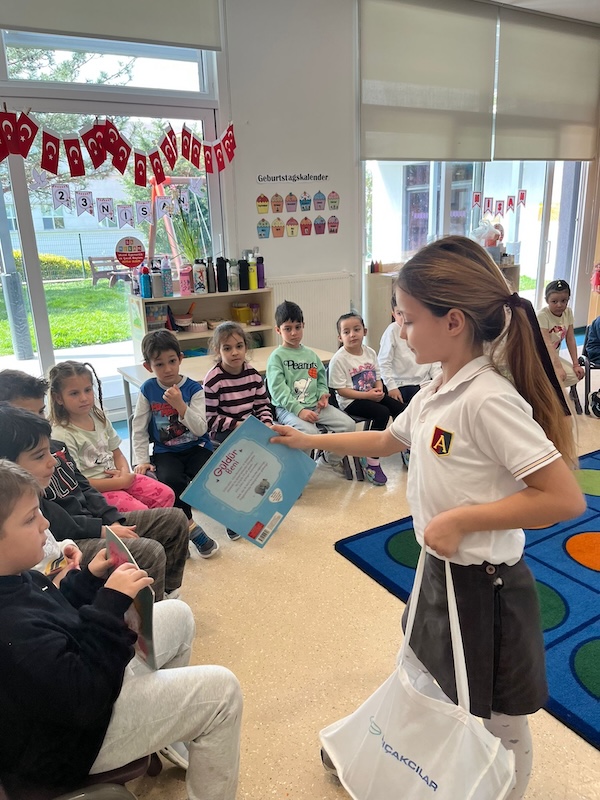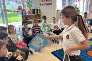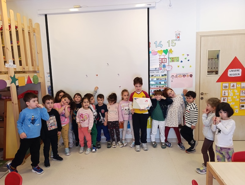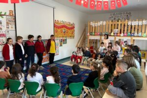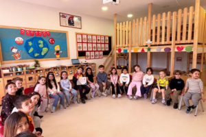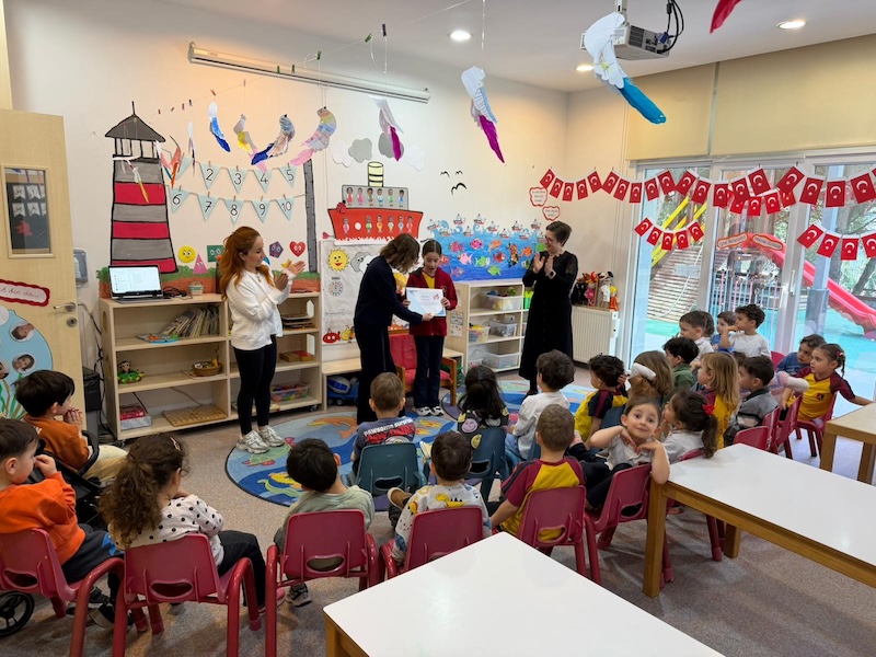 23 Nisan Ulusal Egemenlik ve Çocuk Bayramı kapsamında Anaokulumuzda gerçekleştirdiğimiz etkinlikte; ulusal ve uluslararası yarışmalarda başarı göstermiş ilkokul öğrenci gruplarını ve ilkokul- anaokulu okul başkanımızı sınıflarımızda ağırladık. Öğrencilerimiz, abi ve ablalarının başarı hikayelerini dinleyerek hem farklı yetenekleri tanıma hem de onlara ilgi alanları ve başarıları hakkında soru sorma fırsatı buldular. Özellikle eski bir anaokulu öğrencimizin sınıflarımızdan birinde gerçekleştirdiği hikâye okuma saati, çocuklarımız için anlamlı bir rol model paylaşımı oldu. Akran öğrenmesi ve sosyal etkileşimle dolu bu özel günde, çocuklarımız bayram coşkusunu ilham verici bir deneyimle taçlandırdılar.