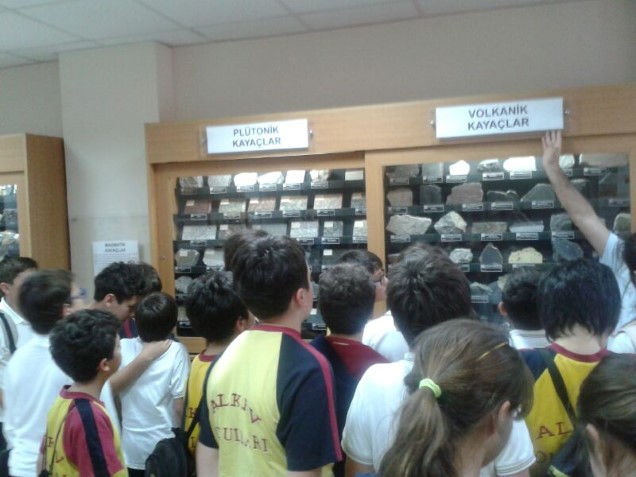 5. ve 6. Sınıf öğrencilerimizle 27-28 Mayıs 2014 tarihlerinde Fen Bilimleri dersi “Yerkabuğu” ünitemizdeki konuları pekiştirmek adına İstanbul Üniversitesi Jeoloji Müzesi’ni ziyaret ettik. Gizli bir hazine olan İstanbul Üniversitesi Jeoloji Müzesi mikro-makro omurgasız/omurgalı fosil koleksiyonlarına sahipti. Öğrencilerimiz müzede yer alan kayaçların, minerallerin, fosillerin, madenlerin özelliklerini değerli öğretim üyelerinin anlatımlarıyla öğrendiler ve bunları inceleme fırsatı buldular.