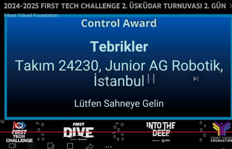 Takımımız, bunların yanında FIRST Tech Challenge 2. Üsküdar Turnuvası’nda Control Award ödülünü kazandı. Control Award, robotun sahadaki işlevselliğini artırmak için sensör ve yazılım kullanan takımı ödüllendirir. Bu ödül, otonom çalışma, akıllı kontrol ile mekanik sistemleri iyileştirme veya daha iyi sonuçlar elde etmek için sensörleri kullanma gibi oyun zorluklarını çözmek için yenilikçi düşünce sergileyen takıma verilir.