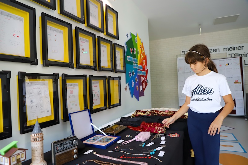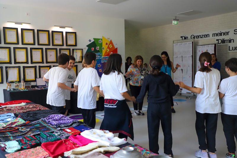 Sosyal Bilgiler dersi kapsamında 5. sınıf öğrencileri ile gerçekleştirdiğimiz ‘’Kültür Unsurlarımız’’ sergisi ile öğrencilerimiz Türkiye’nin zengin kültürel mirasını yakından tanıma fırsatı buldu. Sergide, öğrencilerimizin katkıları ile geleneksel el sanatlarından mutfak kültürüne, kıyafetlerimizden halk oyunlarına kadar pek çok kültürel öğe yer aldı. Sergi alanını gezen öğrenciler, Türkiye’nin dört bir yanını yansıtan geleneksel unsurları yakından inceledi ve kültürel mirasımızın önemini bir kez daha hatırladı.