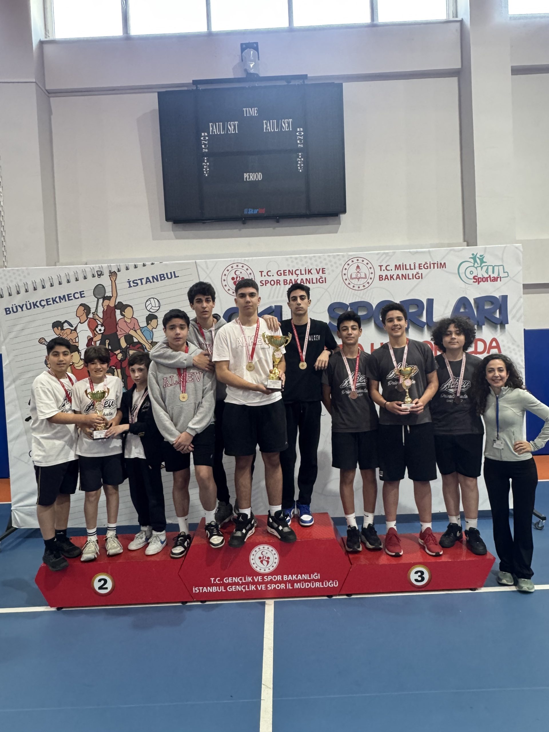 Gurur Duyuyoruz! Ortaokulumuzun Yıldız Erkek Masa Tenisi takımı, Büyükçekmece İlçe Milli Eğitim Müdürlüğü tarafından düzenlenen okul sporları masa tenisi turnuvasında üçüncülük elde ederek bizlere büyük bir sevinç yaşattı! Turnuva boyunca centilmence mücadele eden takımımız, azimleri, disiplinleri ve yüksek motivasyonları ile dikkat çekti. Bu başarı, sadece bir madalya değil; emek, kararlılık ve takım ruhunun bir ödülüdür. Sporcu öğrencilerimizi ve onları destekleyen öğretmenlerimizi yürekten tebrik ediyoruz!