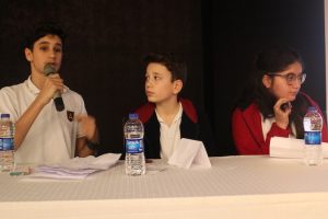 Münazara; iki karşıt düşüncenin iki grup arasında bir jüri önünde tartışıldığı konuşmalardır. Türkçe Bölümü olarak iletişim ve konuşma becerisini destekleyen ve her yıl düzenlediğimiz münazara yarışmalarını bu yıl da 5, 6 ve 7. sınıf seviyelerinde gerçekleştirdik. Sınıf içi münazara maçları sonucunda isimleri belirlenen öğrenciler kendi sınıf düzeylerinde maçlar gerçekleştirerek topluluk önünde konuşma, sorgulama, tartışma, dinleme, karşıt düşüncelere saygı duyma ve kendi düşüncelerini savunma becerilerini geliştirdiler.