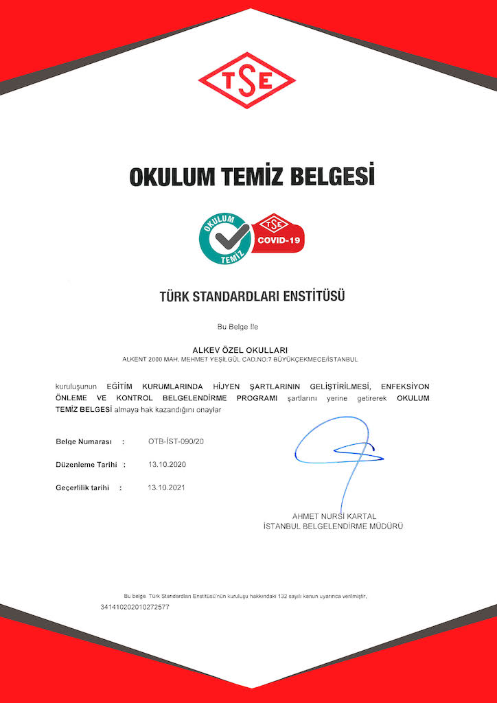 3 Ekim Cumartesi günü TSE denetçileri tarafından gerçekleştirilen Okulum Temiz Belgesi denetiminde, okulumuzda alınan pandemiye dönük önlemlerin Sağlık Bakanlığı ve Millî Eğitim Bakanlığı tarafından belirlenen kriterlere uygunluğu değerlendirilmiştir.