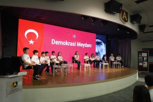 Okulumuz konferans salonunda iki oturum halinde gerçekleştirilen Demokrasi Meydanı’nda adaylar, spor etkinliklerinden sosyal sorumluluk projelerine kadar geniş bir yelpazede önerilerini sundu ve seçmenlerden yoğun alkış aldı.