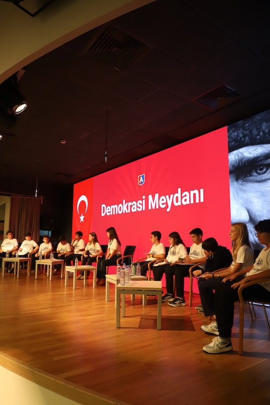 ALKEV Özel Ortaokulu öğrenci birliği başkan adayları, 16 Ekim’de düzenlenen “Demokrasi Meydanı” etkinliğinde arkadaşlarıyla bir araya geldi. Başkanlık için yarışan 12 aday, kendilerini ve projelerini tanıtarak liderlik vizyonlarını paylaştı. Etkinlik, öğrencilerin özgüvenlerini geliştirmeleri ve demokratik süreçleri deneyimlemeleri açısından büyük bir fırsat sundu.