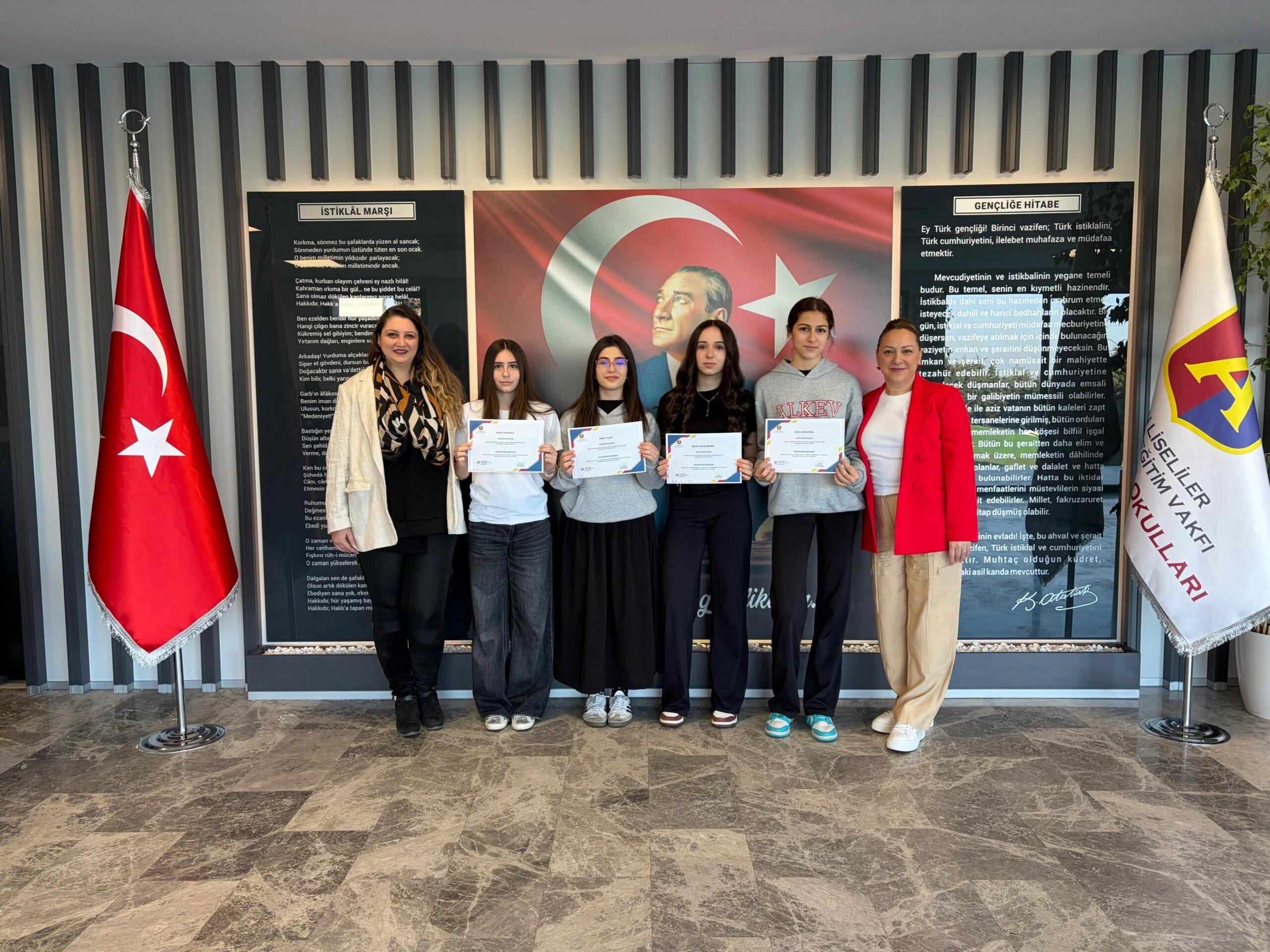 Dünya genelinde Almanca öğrenimini destekleyen ve ZfA ile iş birliği içerisinde çalışan uluslararası bir okul ağı olan PASCH-net’in düzenlediği yarışmada, lise öğrencilerimizden Irmak Y., Aden T., Melek Naz Ç. ve Duru G.’den oluşan “Baddies” grubu, seçtikleri bir meslekten uzmanla röportaj gerçekleştirerek dünya genelinde Şubat ayı kazananı olmuştur.