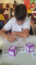 ALKEV Özel Ortaokulu 7. sınıf öğrencilerimizin matematik dersinde ikinci konuları tam sayıların pozitif kuvvetleriydi. Konunun pekişmesi ve matematik dersini somutlaştırmak amacıyla süngerler yardımıyla 2 farklı matematik zarı tasarladık. Kuvvet zarını; her bir yüzeyinde pozitif tam sayılar olacak şekilde, taban zarını da; her bir yüzeyinde hem pozitif hem de negatif tam sayılar olacak şekilde tasarladık. Sınıflarımızı 4’erli gruplara ayırdık. Her gruba kendilerine ait olan zarlar verildi. Gruptaki her öğrenci sırası geldikçe taban ve kuvvet zarını atarak matematik sorusu oluşturdu. Grubundaki tüm arkadaşları ile beraber oluşturulan soruyu düşün eşleş paylaş yöntemi ile çözdüler ve çözümlerini değerlendirdiler. UBD planlarımız doğrultusunda hazırladığımız yönergemize göre tüm öğrencilerimiz kendileri için hazırlanan tam sayılar etkinlik kağıdını zarlar yardımıyla tamamladılar.