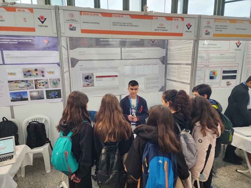 7. Sınıf öğrencilerinden Sarven Ü. Fizik alanında “Ses Kirliliği Önleme: Ses Yutucu Asfalt Kaplama Geliştirilmesi” projesi ile yarışmanın ikinci aşaması olan İstanbul Avrupa Finalleri bölge sergisinde okulumuzu başarıyla temsil etmişlerdir.