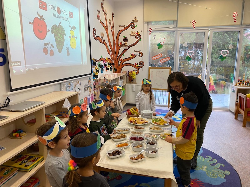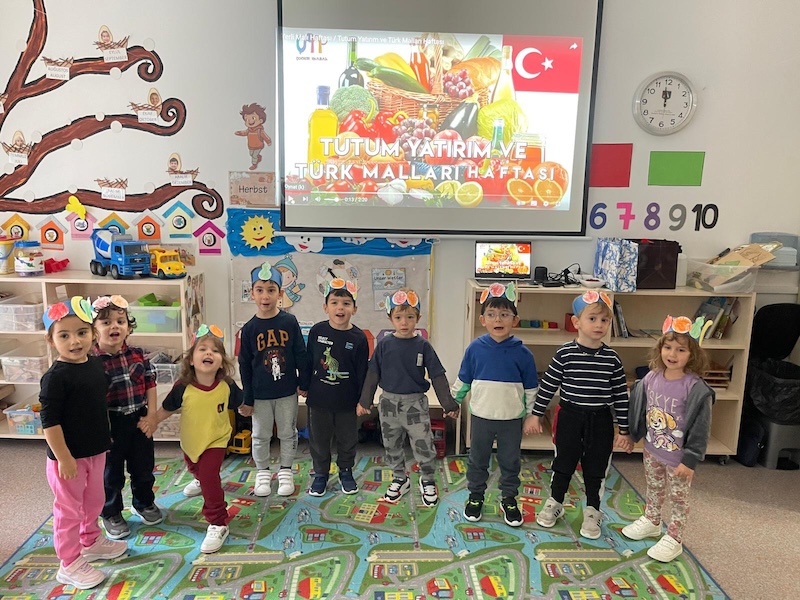 Anaokulu öğrencilerimiz 11-15 Aralık haftasını “Tutum yatırım ve Yerli Malları Haftası “olarak kutladılar. Hafta boyunca yerli malı, tutumlu olmak, tasarruf ve yatırım yapma konularını şiir, sohbet ve dramatizasyonlarla kavramaya çalıştılar. Evden getirdikleri kuruyemiş ve meyveleri arkadaşlarıyla paylaşıp afiyetle yediler. Bu arada sayılabilen, sayılamayan nesneler ve miktar kavramına yönelik matematik etkinlikleri yaptılar.