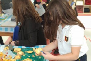 Veli çocuk atölyesi, 14 Ocak Salı günü 4. sınıf veli ve öğrencilerimizin katılımı ile gerçekleşti. Atölye katında Teknoloji ve Görsel Sanatlar Bölümü iş birliği ile düzenlediğimiz etkinliğimizde öğrencilerimiz aileleriyle birlikte ahşap boyama, heykel ve sabun yaptılar. İlk olarak laser box makinesinde kesilmiş olan yeni yıl ağaçlarını, ahşap boyama tekniği ile renklendirdiler ve farklı materyaller kullanarak süslediler. Ardından seramik atölyesine geçen velilerimiz kil kullanarak kuş figürü modülasyonu yaptılar, sabun üretmek üzere patateslere şekil vererek form makinesi ile kalıp aldılar. Kalıplara esans, boya ve çiçek yerleştirerek sabunlarını döktüler. Atölye katında çocuklarımızla velilerimiz gün boyu birlikte çalışma fırsatı elde ettiler.