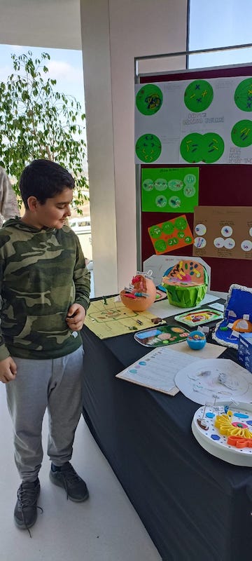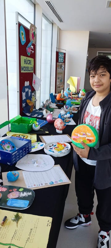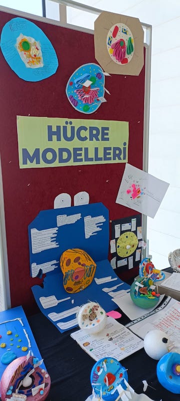 Okulumuz 7. sınıf öğrencileriyle 2. ünite olan “Hücre ve Bölünmeler” kapsamında Yaratıcı Hücre Modelleri Yapma Etkinliği yapılmıştır. Günlük hayatta çok duydukları bir kavram hakkında bilgilendirme ve kavramların vurgulanması adına işlevsel bir etkinlik olmuştur. Her şube sınıflarında bitki ve hayvan hücre modellerini oluşturmuş, hücre konusunun öğreniminin zorluğu bu etkinlikle basite indirilmiş böylece konuyu eğlenerek öğrenmişlerdir. Yapılan bu çalışmayla hücre organelleri, görevleri, organelleri şekilleri, hücreler arasındaki farklılıklar pekiştirilmiştir. Yapılış itibariyle oldukça basit malzemeler içeren hücre modelleri bir hücrede yer alan çeşitliliği, hücrenin yapısını ve özelliklerini anlamaya yardımcı olmuştur.