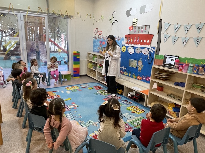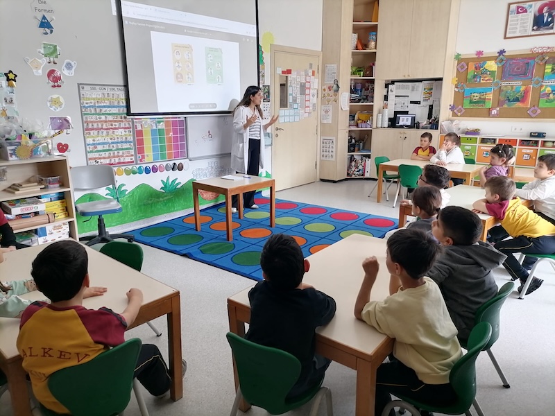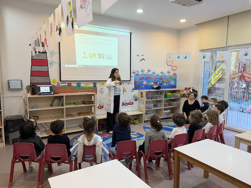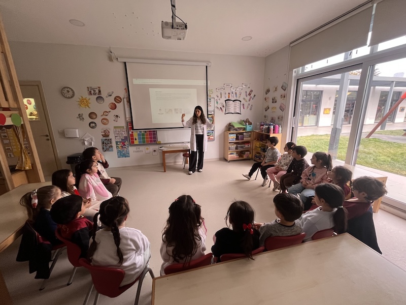 Anaokulu öğrencilerimiz, Yeşilay Haftası kapsamında okul hemşiremiz Ezgi Sever Uz ile sağlıklı yaşam üzerine farkındalık etkinliğine katıldı.