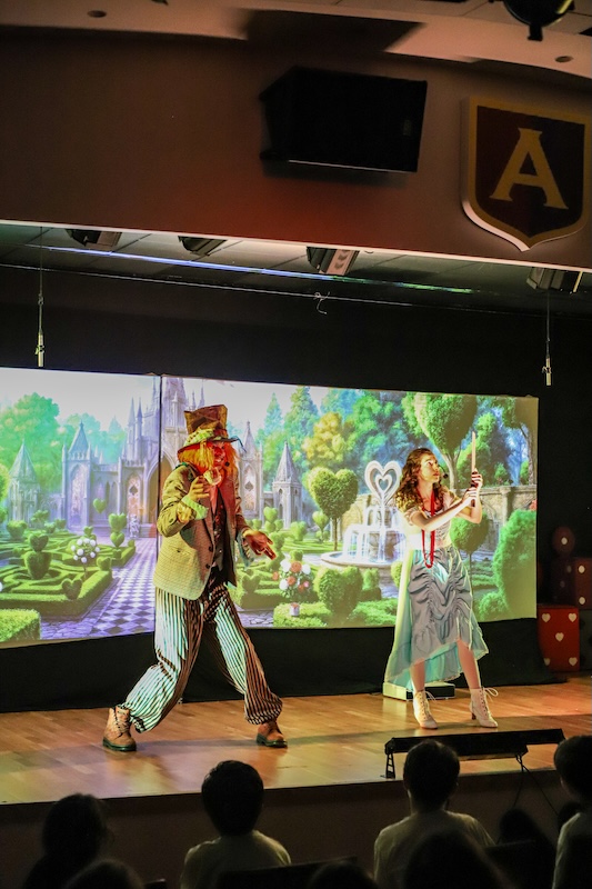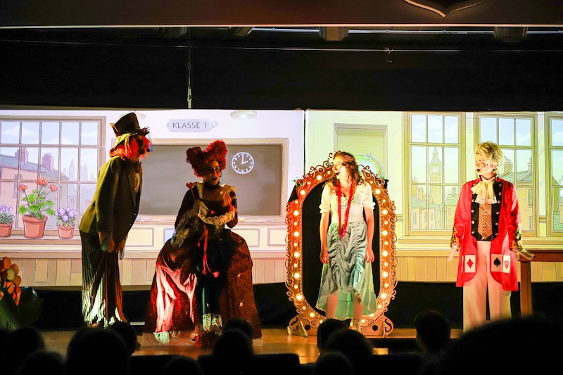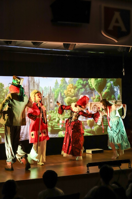 Das Theaterstück „Alice im Wunderland“ wurde in deutscher Sprache aufgeführt. Das Cloud Theatre überzeugte mit professionellen Schauspieler*innen, die eigens aus Deutschland angereist waren, und präsentierte eine eindrucksvolle sowie interaktive Inszenierung gemeinsam mit den Schüler*innen auf der Bühne.