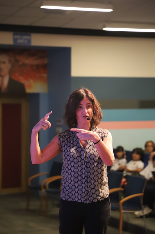 Sie berichtete unseren Schüler*innen, wie sie zum Schreiben und Zeichnen kam, und leitete anschließend einen Live-Zeichenworkshop. Danach sprach sie mit den 2. Klassen über ihr Buch “Der höchste Bücherberg der Welt und” mit den 3. Klassen über “Mein liebster Superheld” – und signierte die Werke. Unsere Schüler*innen erlebten einen besonderen Tag voller Bücher, Illustrationen und Kreativität. Wir danken Rocio Bonilla herzlich für ihren Besuch.