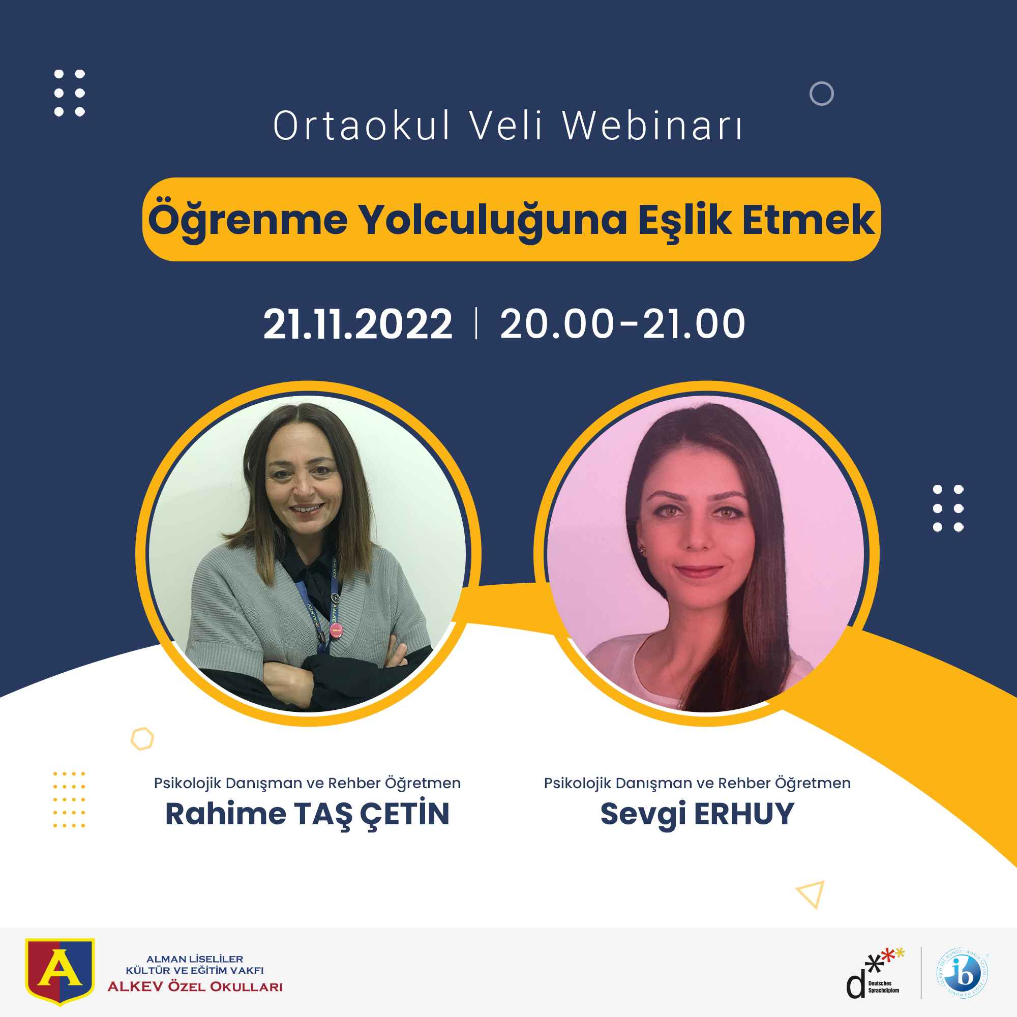 Ortaokul Psikolojik Danışma ve Rehberlik Birimimiz tarafından “Öğrenme Yolculuğuna Eşlik Etmek” konulu webinar gerçekleştirilecektir. Webinarımızda aile yaşamında iletişim, sorumluluk sahibi çocuklar yetiştirmede aile olarak rolümüz, ebeveyn tutumlarımız, başarıya etki eden faktörler, etkili ve verimli çalışma başlıklarına değinilecektir.