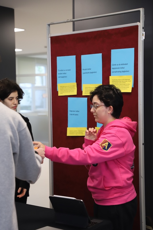 Each station took the form of a practical mini-workshop where students gained awareness and learned through discussion using examples. At the end of the event, the students decorated the ‘Academic Integrity Tree’ with their own words, awareness notes, and messages of good practice, creating a powerful collective message about the meaning and importance of the day.