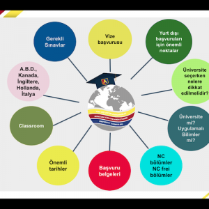 Velilerimiz ve öğrencilerimizle hem okul bünyesinde yaptığımız bire bir toplantılar, sunumlar, bilgilendirici çalıştaylar, her ay panomuzda ve elektronik posta ile paylaştığımız okul tanıtımlarıyla hem de okul dışındaki üniversite fuarları ve üniversite ziyaretleri yoluyla yurt dışı başvurularına ilişkin gerekli bilgileri paylaşırız. Bunların yanı sıra okulumuzu yurt içinde ve yurt dışında gerçekleştirilen fuarlarda ve üniversite ziyaretlerinde temsil ederiz.